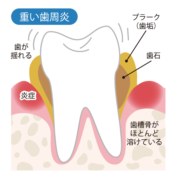 こうなってしまうと歯周病はどんどん進行してしまい、最終的には歯がグラグラして抜けてしまうのです。