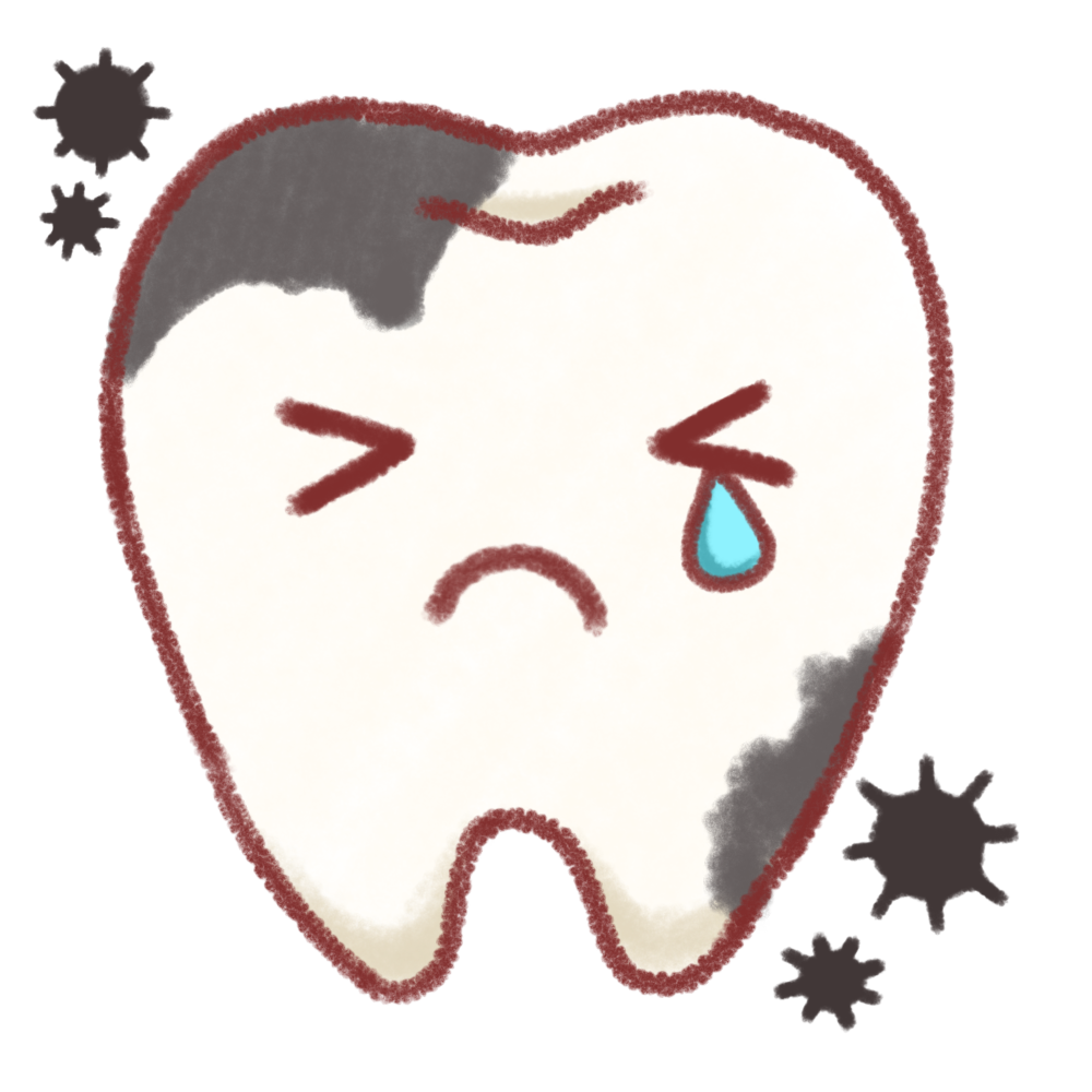虫歯はお口のなかの細菌感染が原因で起こります。お口のなかの食べかすやプラークと呼ばれる磨き残しを餌にお口になかの細菌が活発になり、歯を溶かす酸を産生します。