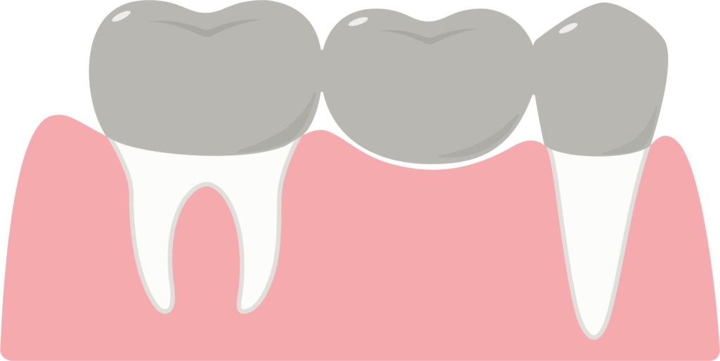 失った歯の両隣の歯を削り、橋のように被せ物をつなげる治療。